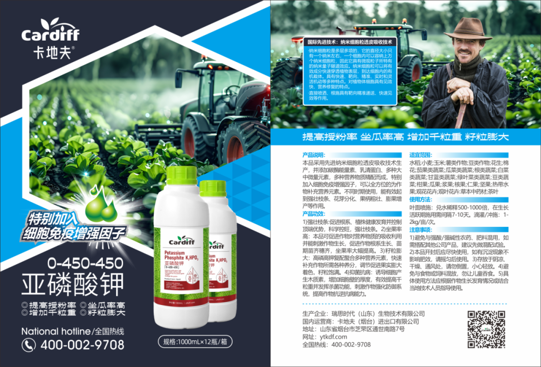 富含磷、钙、锌等多种关键元素,与碳酶能量素协同作用,能有效促进作物根系发育,增强作物对养分的吸收。在蔬菜种植中应用广泛,比如在一片番茄种植基地,使用卡地夫 - 磷钙锌后,番茄根系更发达,植株生长健壮,果实饱满且色泽鲜艳,产量相比未使用的地块提高了 20%,果实中维生素和糖分含量也明显增加。